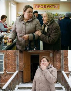 Elena, kao i svaka druga žena, bila je zauzeta obavljanjem svojih svakodnevnih obaveza. Tokom hladnog zimskog dana, našla se u maloj trgovini, okružena ostalim kupcima koji su nervozno čekali u redu. Pred njom, starija žena pokušavala je izbrojiti sitniš iz izlizane torbice. Njene kupovine su bile skromne – nekoliko osnovnih namirnica koje su odražavale jednostavne životne potrebe. Međutim, svi su mogli primijetiti da joj nedostaje novca za kupovinu. Dok su neki kupci pokazivali nestrpljenje i nerazumijevanje, Elena je osjetila unutrašnju potrebu da joj pomogne. Ovaj trenutak sa strankom u trgovini postao je ključan za njen unutrašnji razvoj, ali ona to u tom trenutku nije mogla ni naslutiti.